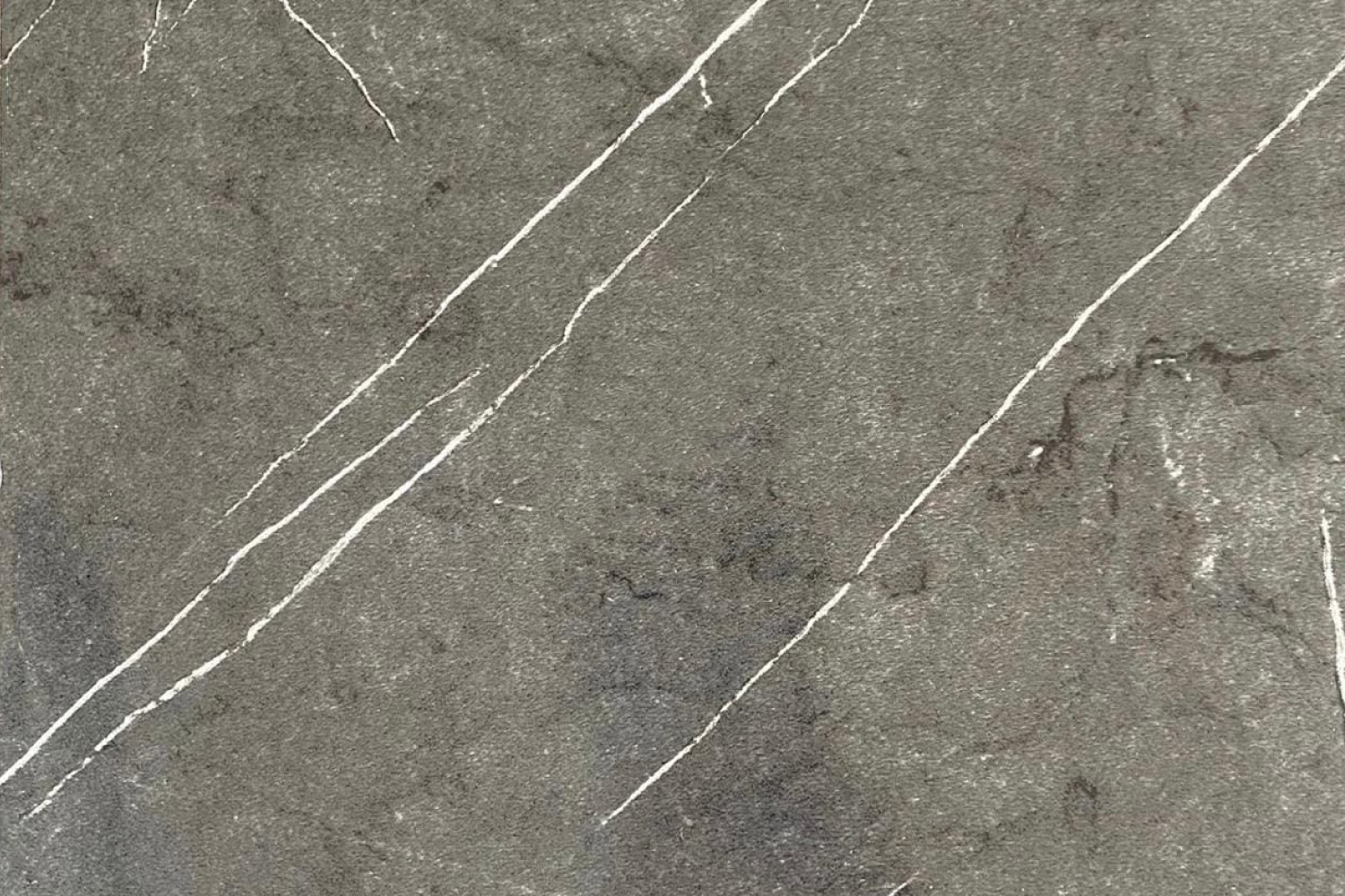 • חיפוי קיר במראה שיש טבעי – אפור כהה עם פסי שיש לבנים עדינים, בגימור מט יוקרתי